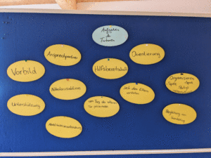 Und gleich zu Beginn konnten sich die Tutoren bereits über lustige, aber auch herausfordernde Situationen mit unseren Neuankömmlingen austauschen. So wurden schon Kennenlernspiele mit ihnen gemacht, die Schulhausrallye mit zwei Klassen organisiert und die Begleitung zum Sportunterricht gemanagt.