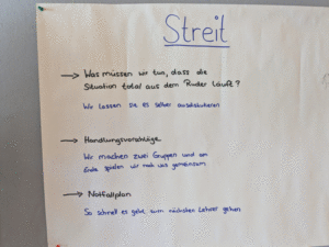 Im Anschluss daran wurden die Tutoren in vier Gruppen eingeteilt und es sollten vier brenzlige Situationen bearbeitet werden, alle waren aus dem Erfahrungsschatz und sind wirklich passiert. Durch Gespräche und Handlungsvarianten konnten alle Situationen besprochen und gelöst werden, das hilft natürlich bei zukünftigen Aktionen weiter.