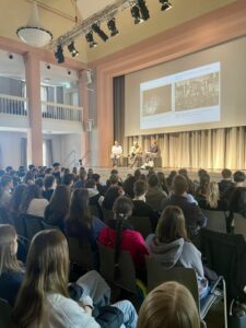 Zum Abschluss blieb ausreichend Zeit für Fragen aus dem Publikum, sodass die Schüler und Schülerinnen ihre Gedanken und Eindrücke aktiv einbringen konnten, was zahlreich in Anspruch genommen wurde: „Hatten Sie in dieser Nacht bereits etwas gehört? Wie haben Sie das Ganze danach verarbeitet? Wurde das Thema in Ihrer Familie besprochen? sind nur einige wenige Beispiele.